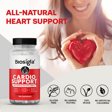 Cardio Support is a unique blend of potent plant extracts that work together to support healthy blood pressure and reduce stress in a natural way, without any side effects. Your heart health and circulation will be improved and all nutrients and oxygen will be transported properly to various parts of your body including the brain, muscles and skin. Leading an active lifestyle and taking care of your heart health, will improve your quality of life significantly. Be your best self!
