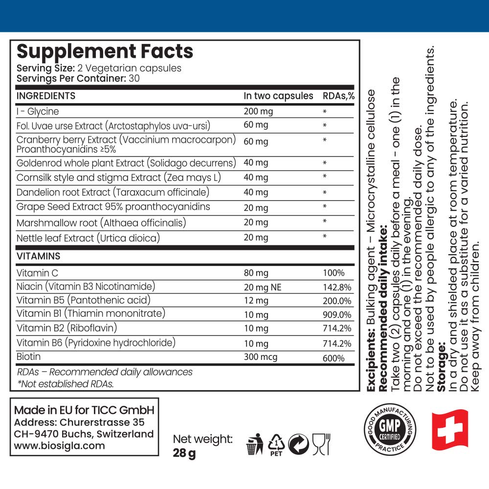 Contains 16 vitamins, antioxidants, co-enzymes, amino acids, and, plant botanicals to help tone, soothe and support healthy urinary and kidney function.