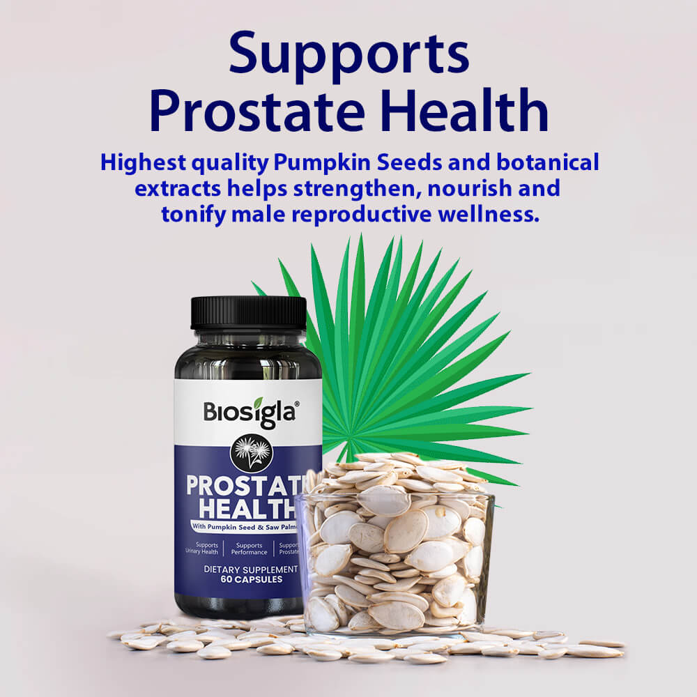 Saw palmetto, Tribulus Terrestris and Pumpkin Seeds have been touted for their positive role in male reproductive health and supporting healthy prostate function.