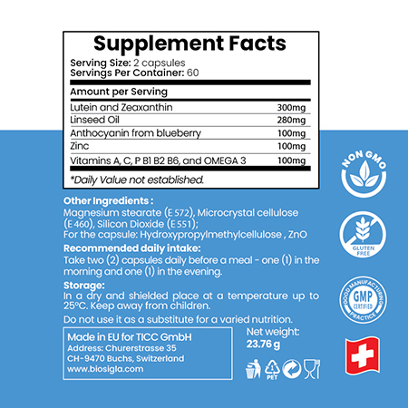 Chock full of Lutein and Zeaxanthin, the only carotenoids which are stored in the retina of the eye. The natural properties of the rare ingredients help boost visual acuity.